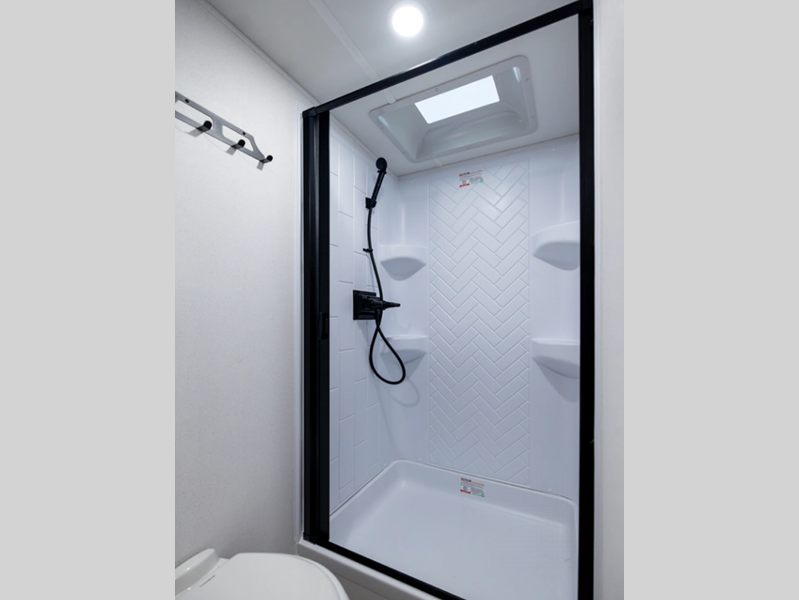 Each model is constructed with a fully enclosed and heated underbelly plus a fully laminated roof for added durability. There is also a power tongue jack outside, along with a power awning with LED lights, and slam latch baggage doors with magnets. Inside, you'll find roller shades, ball bearing drawer guides, USB ports, and more comforts and conveniences.