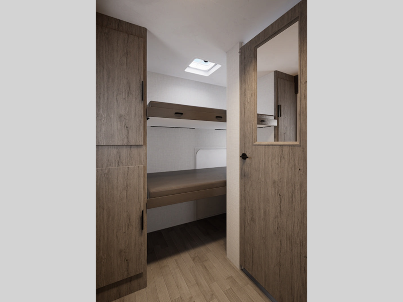 Sleeps 8 Slides 1 Length 29 ft 10 in Ext Width 8 ft 1 in Ext Height 10 ft 5 in Int Height 6 ft 8 in Interior Color Fog, Mink, Thunder Hitch Weight 580 lbs GVWR 8700 lbs Dry Weight 6115 lbs Cargo Capacity 2585 lbs Fresh Water Capacity 45 gals Grey Water Capacity 80 gals Black Water Capacity 40 gals Tire Size 225/75R15E Number Of Bunks 2 Available Beds Queen Refrigerator Type 12V Double Door Norcold Refrigerator Size 7 cu ft Cooktop Burners 3 Number of Awnings 1 Axle Weight 5535 lbs LP Tank Capacity 5 gals Water Heater Type Truma AquaGo Axle Count 2 Number of LP Tanks 2 Shower Type Standard Similar Floorplans