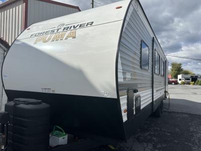 The Puma Camping Edition by Palomino offer an affordable travel trailer for rookie campers or seasoned RVers! They are built with 5/8" tongue and groove plywood flooring and a front diamond plate for added protection. There are also exterior clamp style door latches, back up camera prep, and 20 lb. LP bottles. Head inside to find Thermofoil countertops with a smooth drop edge, bedroom USB ports and outlets, and a GE appliance and kitchen package.