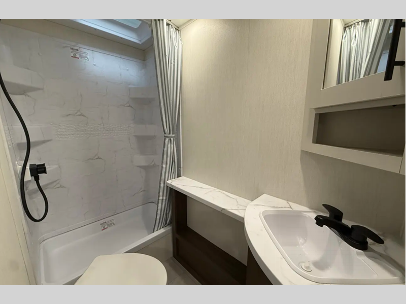 Sleeps 3 Slides 1 Length 23 ft 4 in Ext Width 8 ft Ext Height 10 ft 9 in Hitch Weight 585 lbs Dry Weight 5013 lbs Cargo Capacity 2572 lbs Fresh Water Capacity 42 gals Grey Water Capacity 34 gals Black Water Capacity 34 gals Furnace BTU 30000 btu Available Beds Camp King Refrigerator Type 12V Cooktop Burners 3 Number of Awnings 1 Water Heater Type Tankless AC BTU 15000 btu TV Info LR Smart TV Awning Info Power Awning w/LED Lights Axle Count 2 Shower Type Standard Solar Wattage 200 watts Similar Floorplans