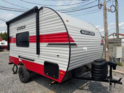 You can trust the build and enjoy your experience with any one of these Sunset Park RV Sun Lite travel trailers! Their aerodynamic profile is not only easy to haul, but also saves on fuel. They are built to withstand years of traveling even though they are lightweight with a diamond plate rock guard, a one piece PVC roof membrane, Dexter Spring-Leaf axles, and tinted safety glass windows. Some comfort standards you are sure to enjoy are the two-burner stove top range with hood, light and fan, plus the refrigerator and microwave, and an outside shower to help keep the dirt outdoors where it belongs.